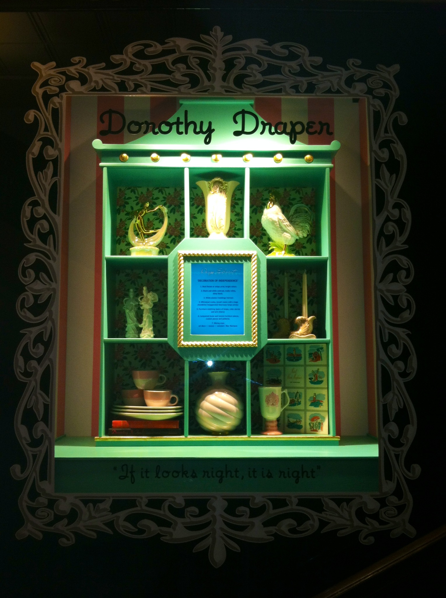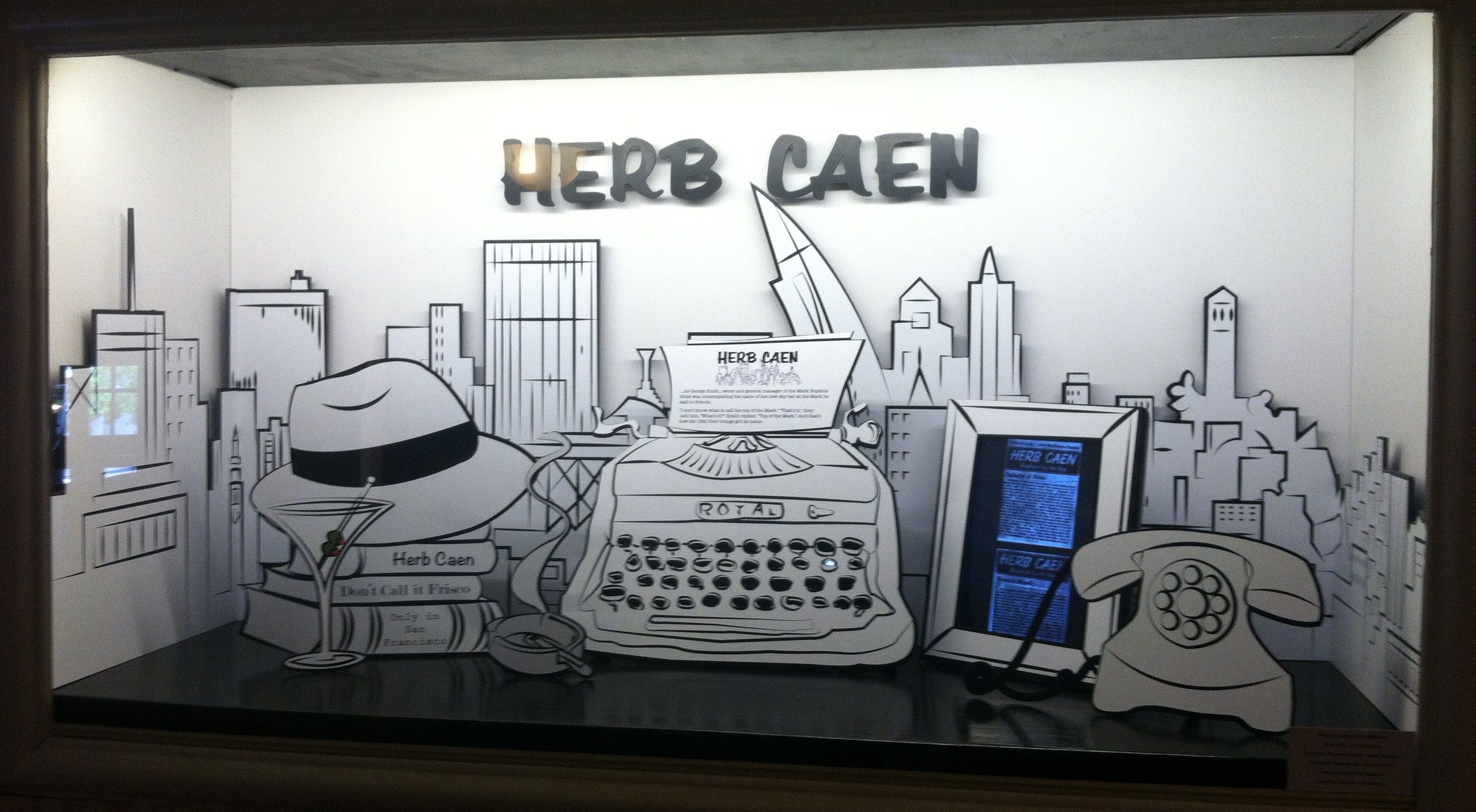 Collaboratively designed and built window displays for The Mark Hopkins Hotel in San Francisco, California. Created over a period of four months, worked on all and conceptualized all collaboratively, one (Yma Sumac) is not pictured. Illustrated vinyl lettering, borders and wallpaper patterns. Worked with creative director of Mark Hopkins Hotel, and learned many construction techniques.
