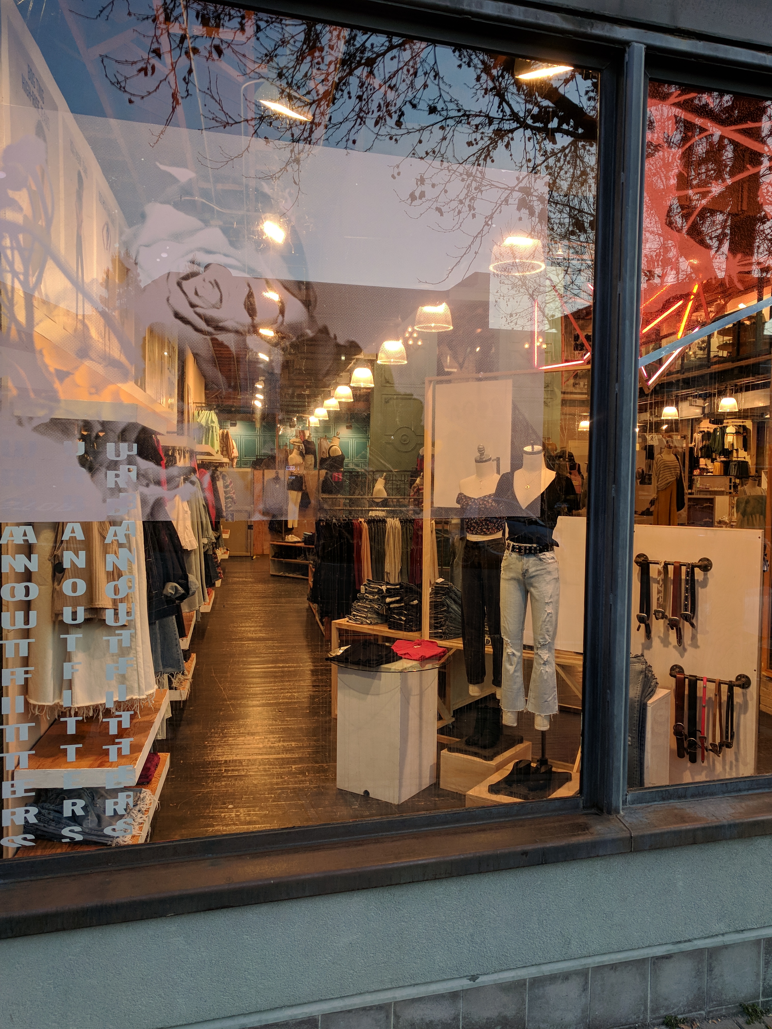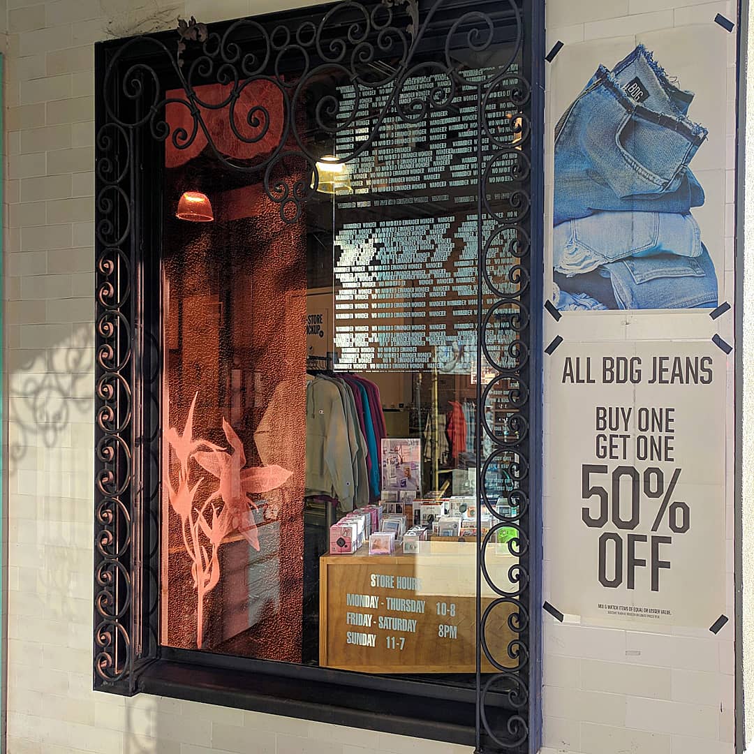 Visual merchandising manager and designer of reset on the Walnut Creek CA sales floor; including Women’s, Men’s, Beauty and Home. Designed and implemented vinyl window designs.