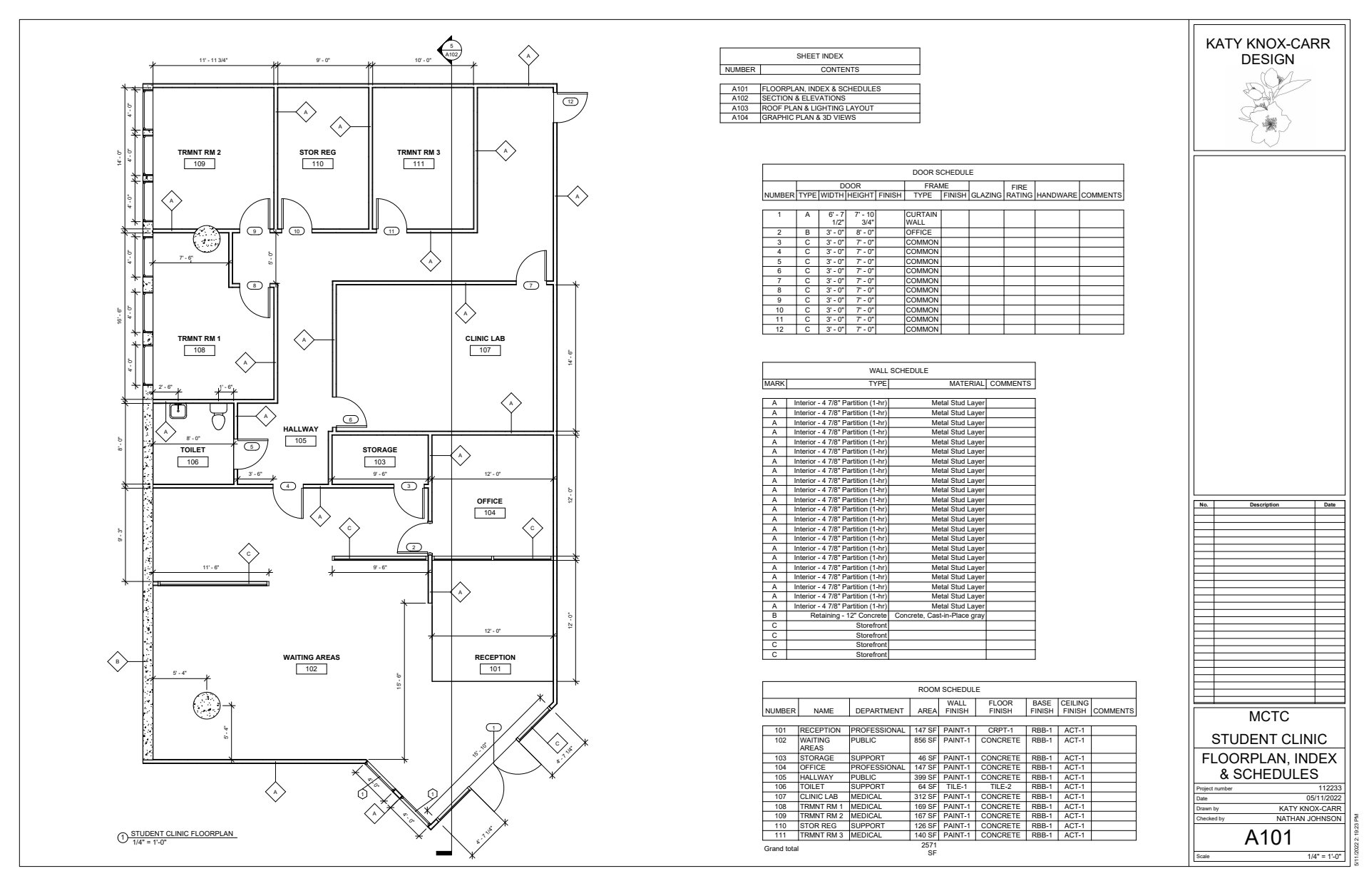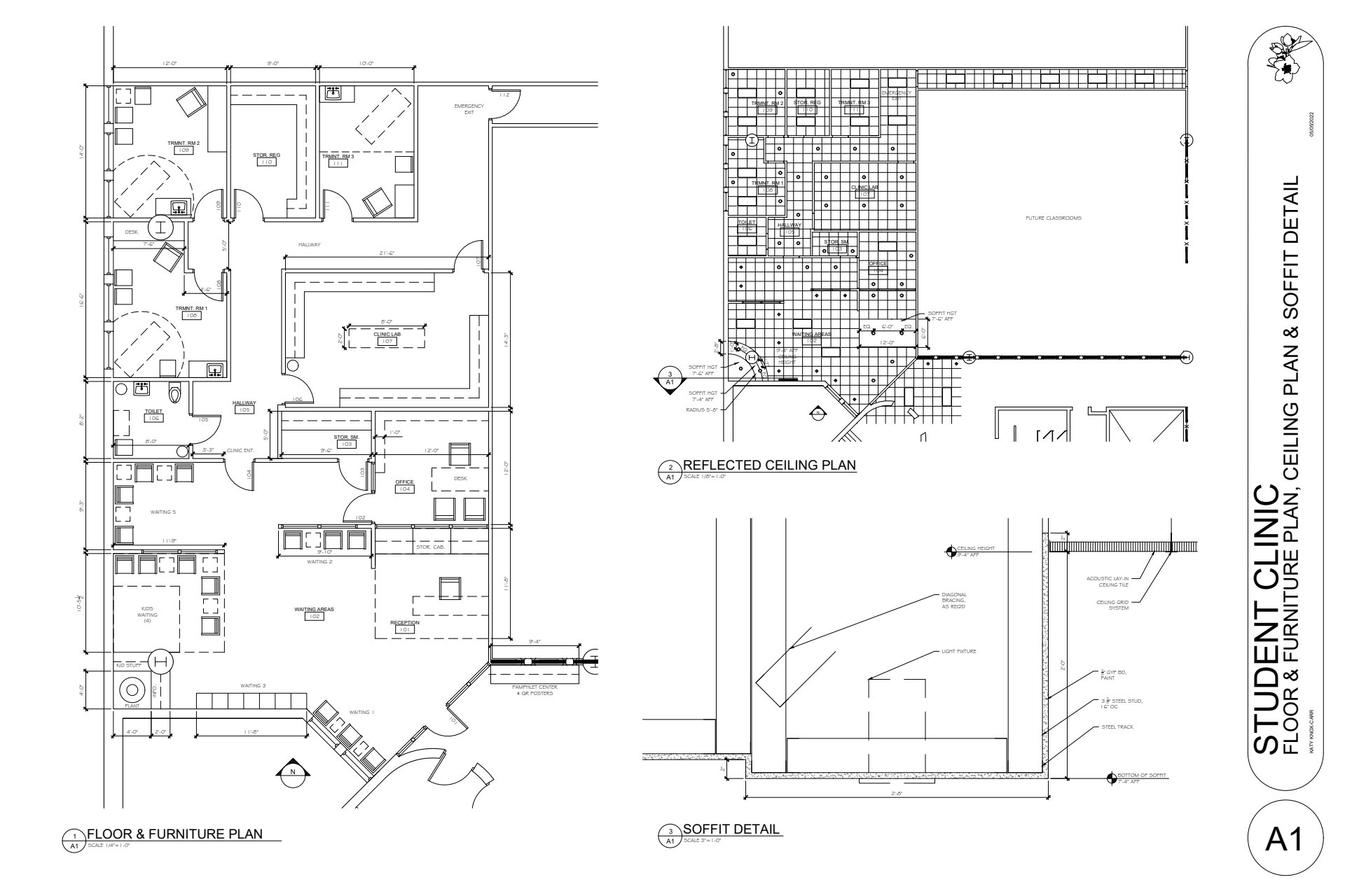 Final project wherein a student clinic must be designed around certain parameters, including square footage requirements. First semester project for Revit 1, second semester AutoCAD.
